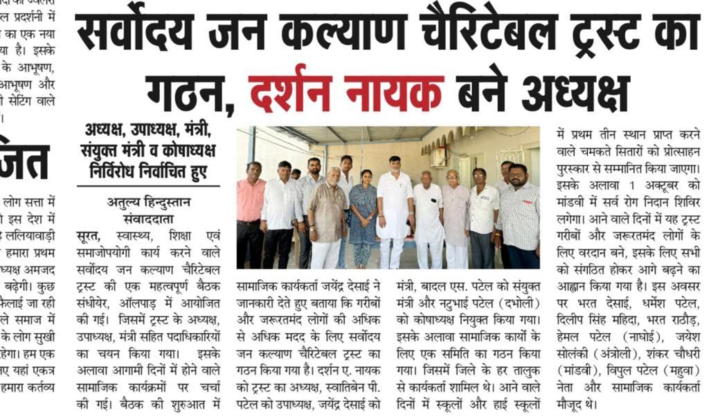 Darshan Naik Takes Helm as President of Sarvodaya Jan Kalyan Charitable Trust